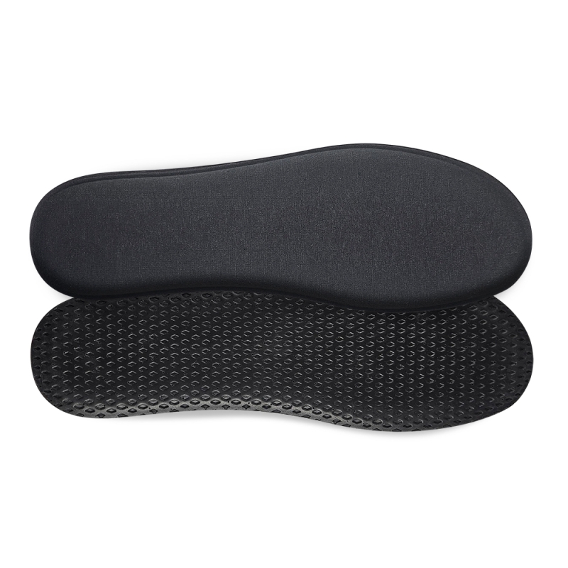 The mid-layer is made of polyurethane foam with the temperature-dependant behaviour, hardening with cold and softening with heat. The insoles adapt to the anatomy of the foot and ensure an ideal distribution of the foot sole’s pressures. The lycra and polyester upper layer is soft to the touch. The bottom layer is made of non-slip latex.